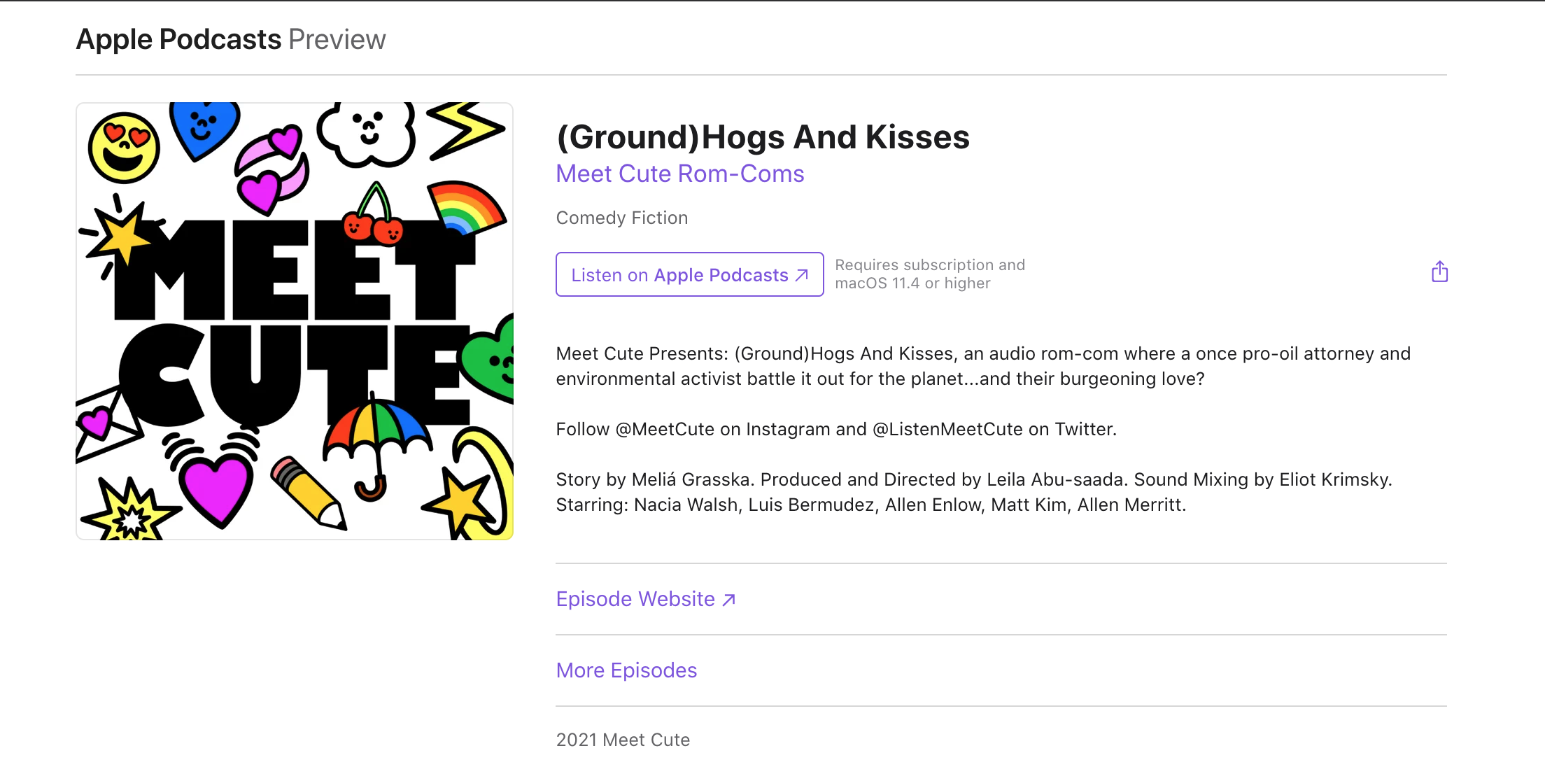 When they approached me asking for a holiday inspired Meet Cute script, there was only one holiday I had in mind. The most romantic, iconic, adorable day out there…. GROUNDHOG DAY. Click the image below to listen now.